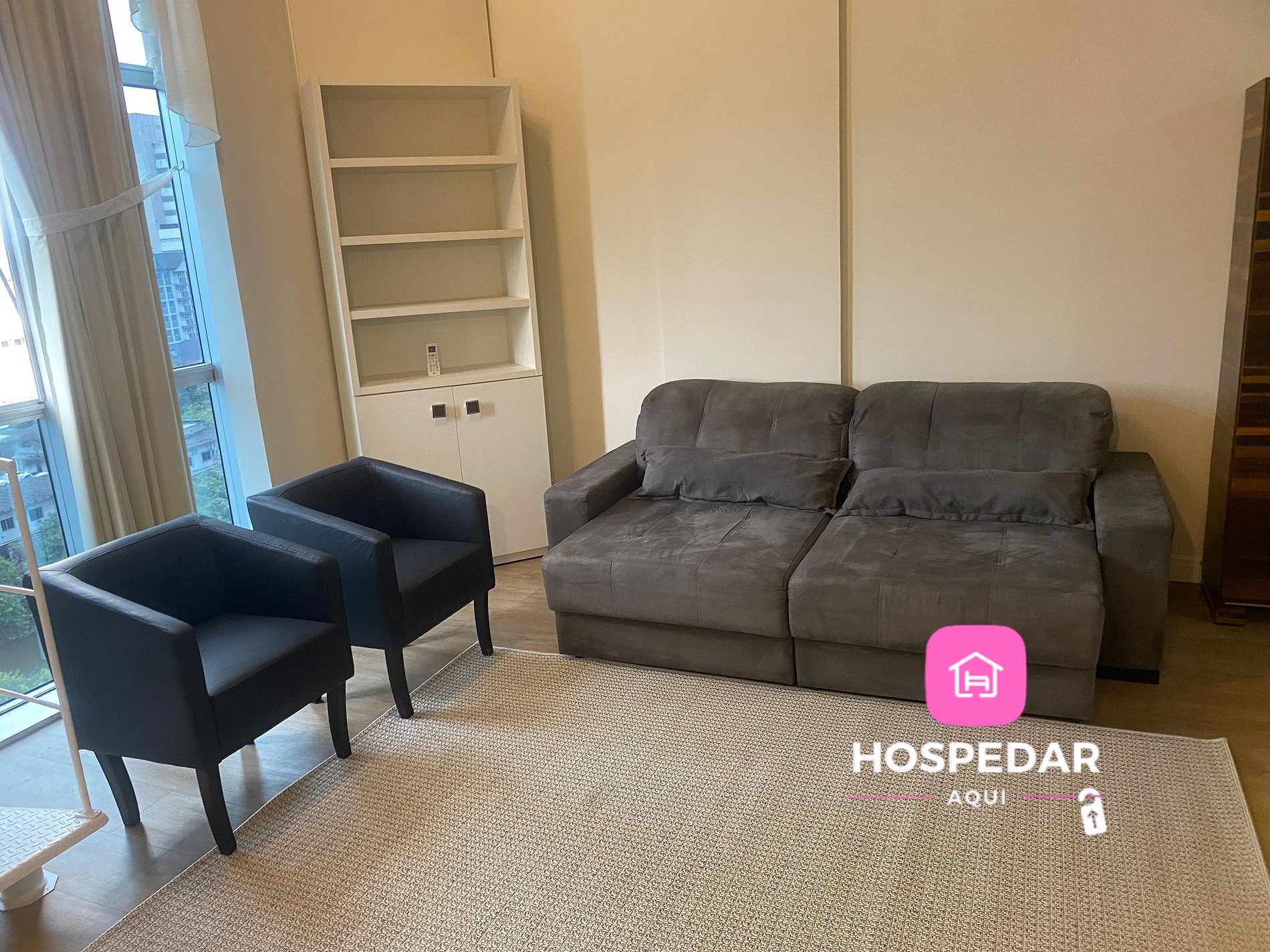 Além do loft exclusivo para os hóspedes, o prédio tem piscina e academia de ginástica no terraço, com uma vista incrível da cidade além de uma garagem privativa sem custo.