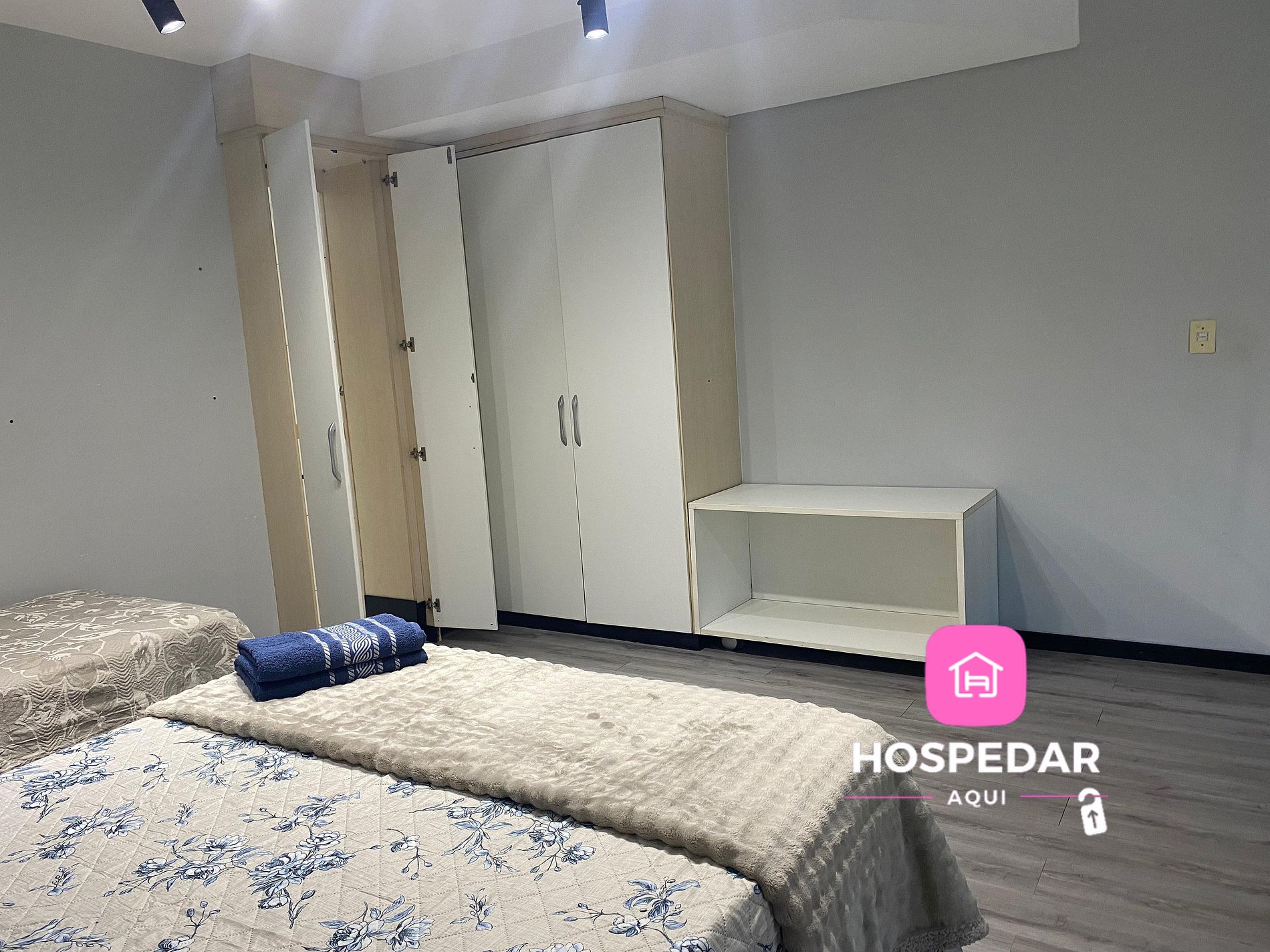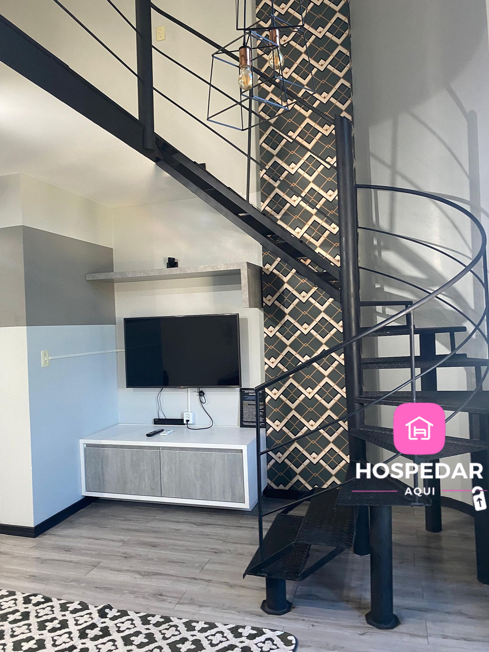 Além do loft exclusivo para os hóspedes, o prédio tem piscina e academia de ginástica no terraço, com uma vista incrível da cidade além de uma garagem privativa sem custo.