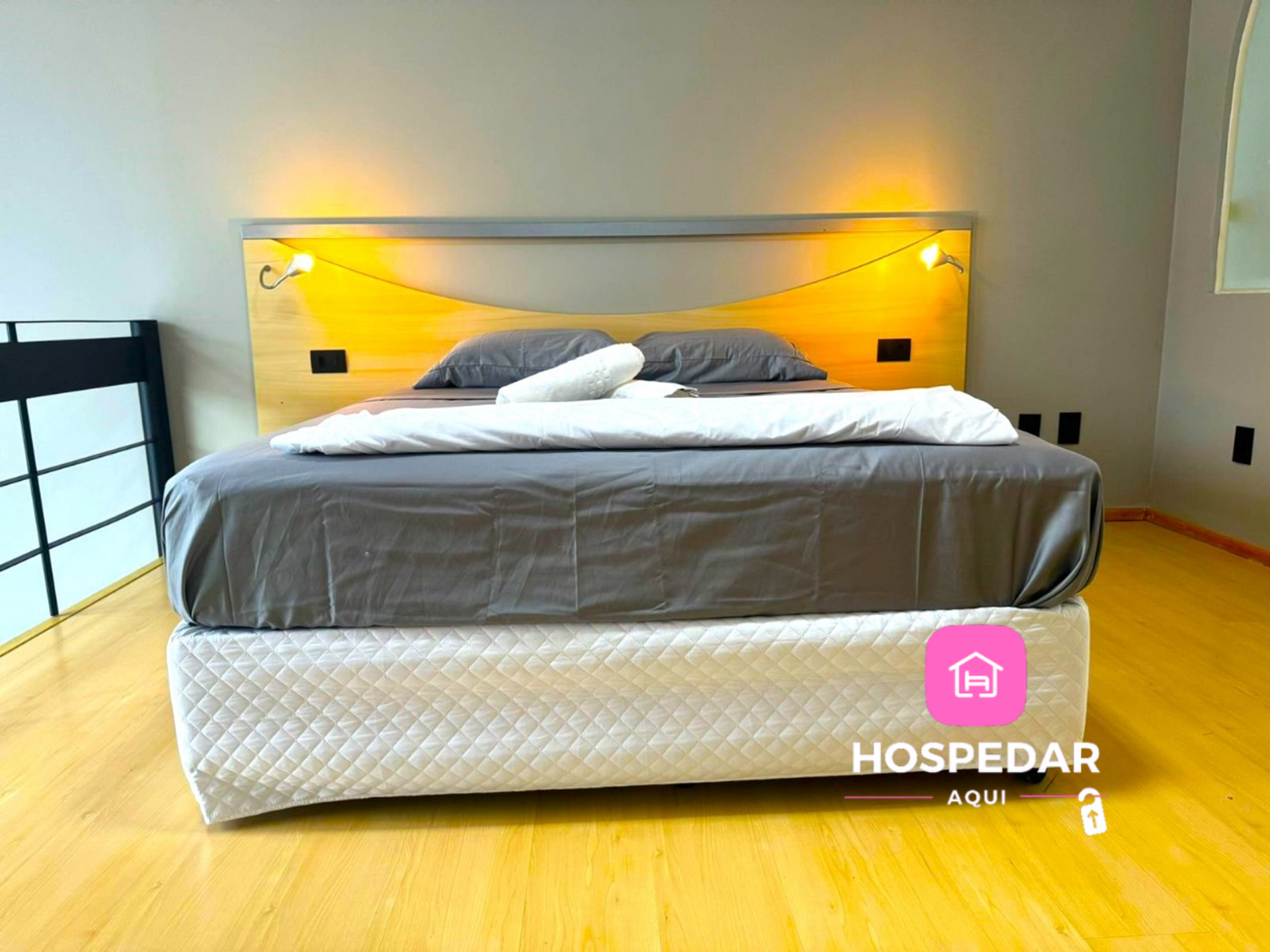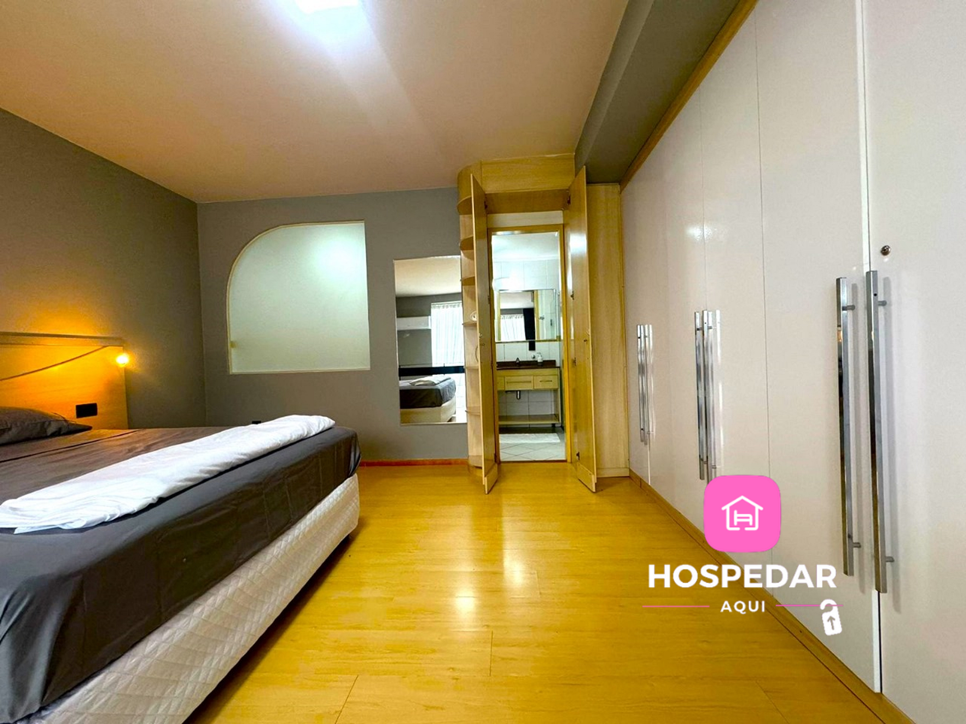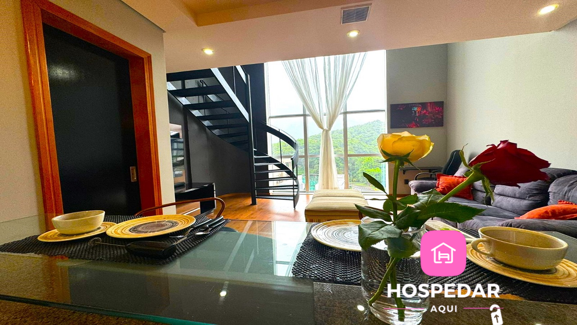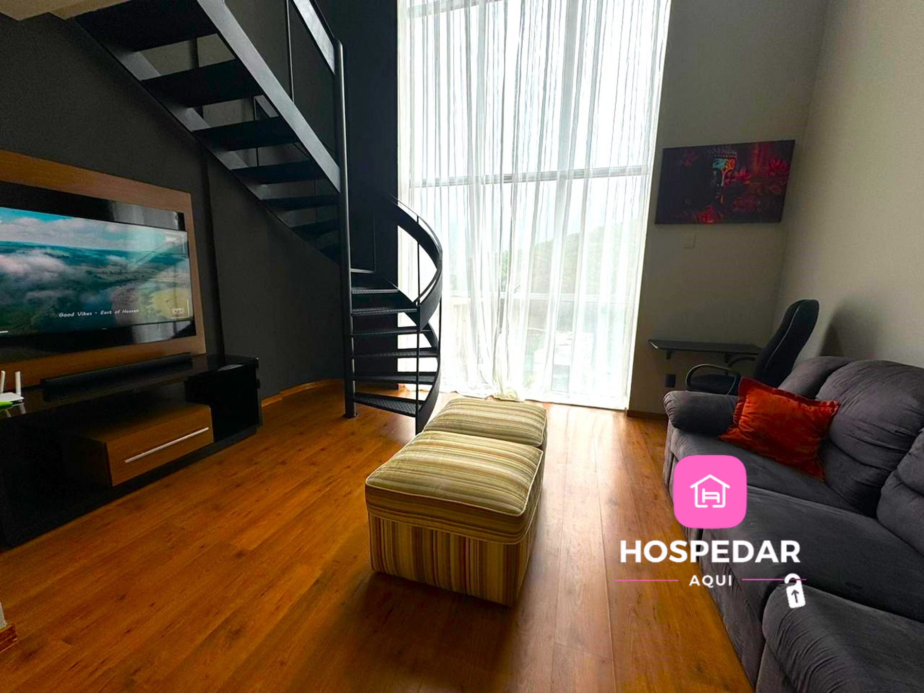 Além do loft exclusivo para os hóspedes, o prédio tem piscina e academia de ginástica no terraço, com uma vista incrível da cidade além de uma garagem privativa sem custo.