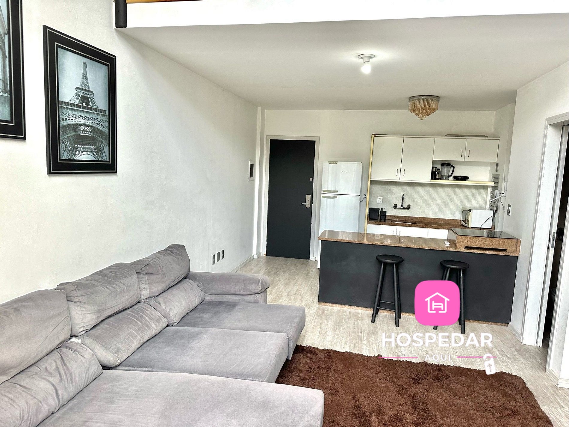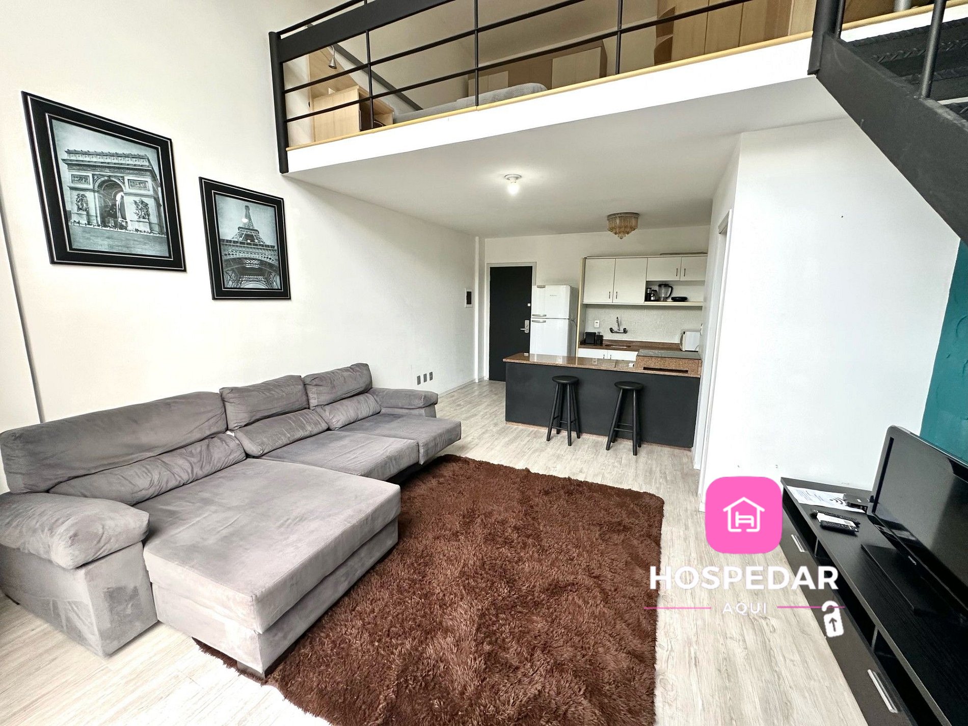 Além do loft exclusivo para os hóspedes, o prédio tem piscina e academia de ginástica no terraço, com uma vista incrível da cidade além de uma garagem privativa sem custo.