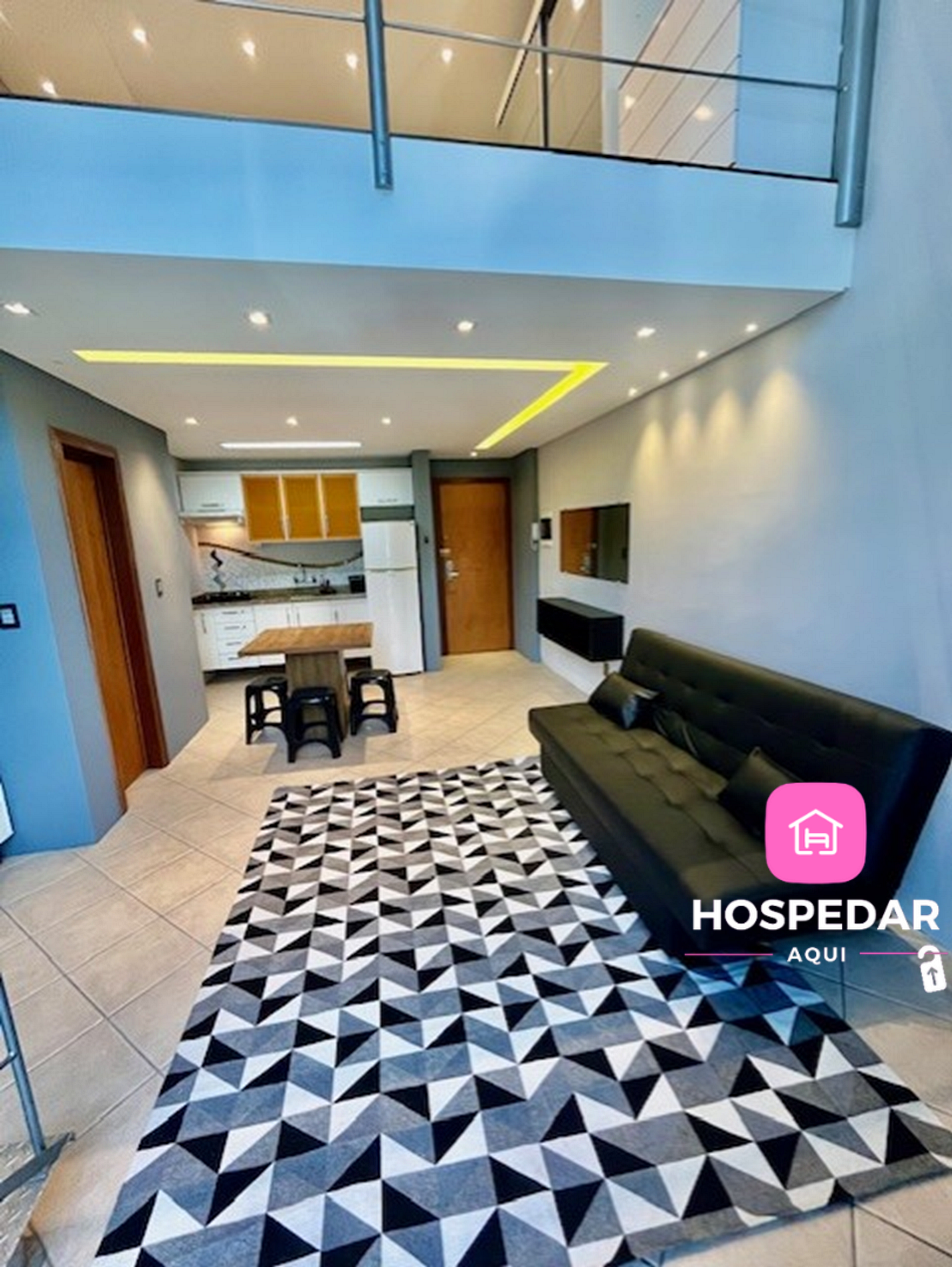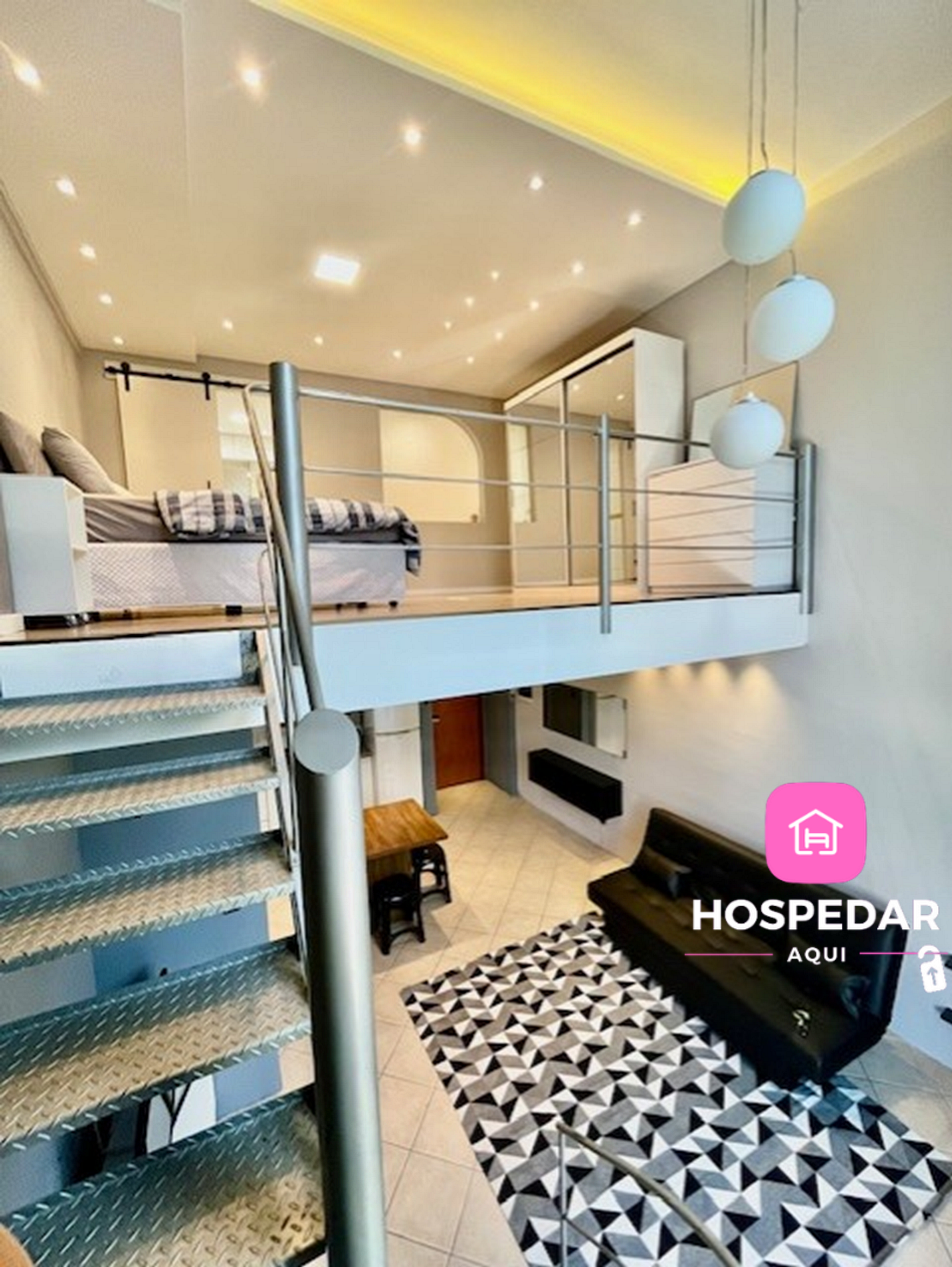 Além do loft exclusivo para os hóspedes, o prédio tem piscina e academia de ginástica no terraço, com uma vista incrível da cidade além de uma garagem privativa sem custo.