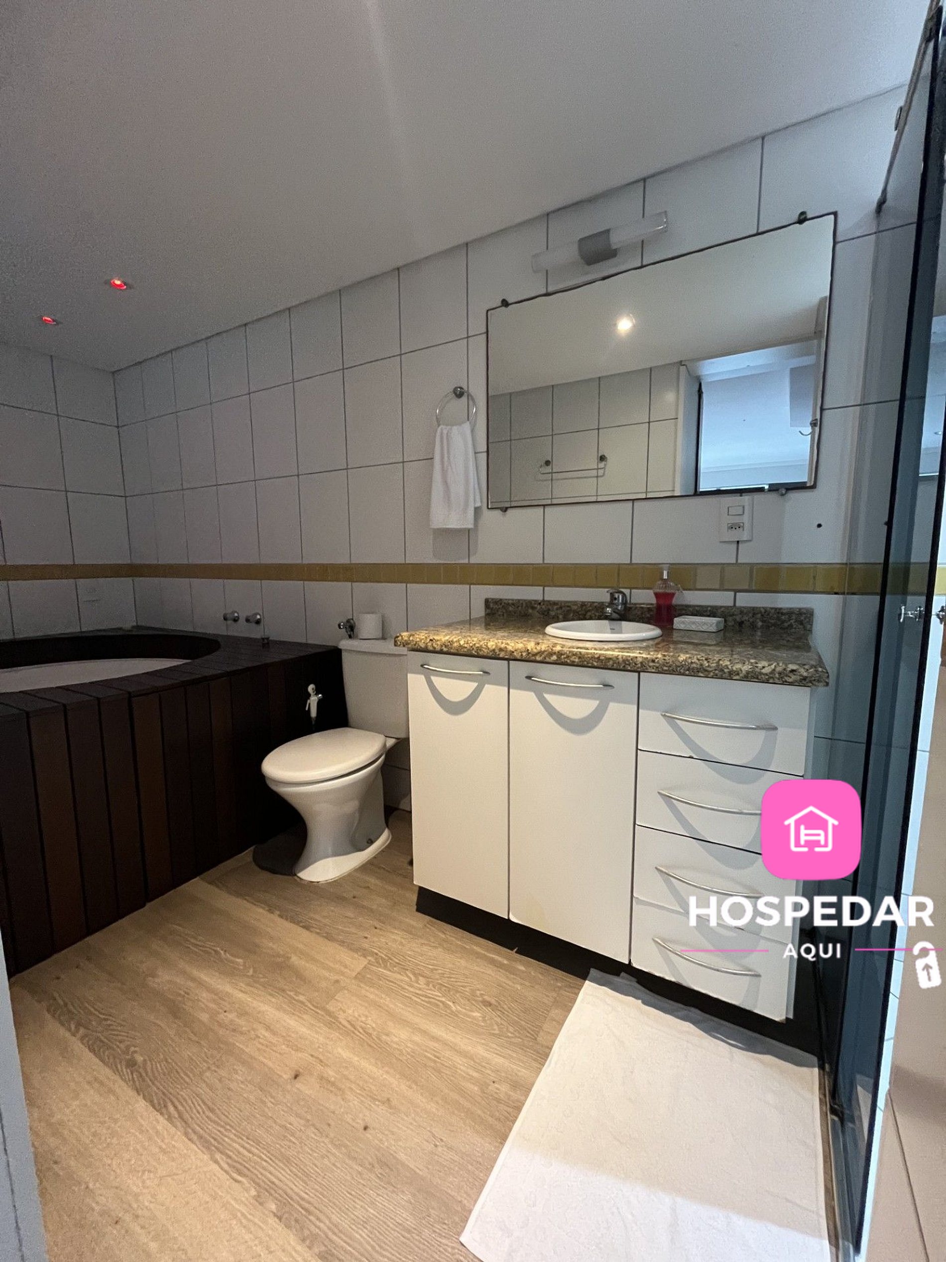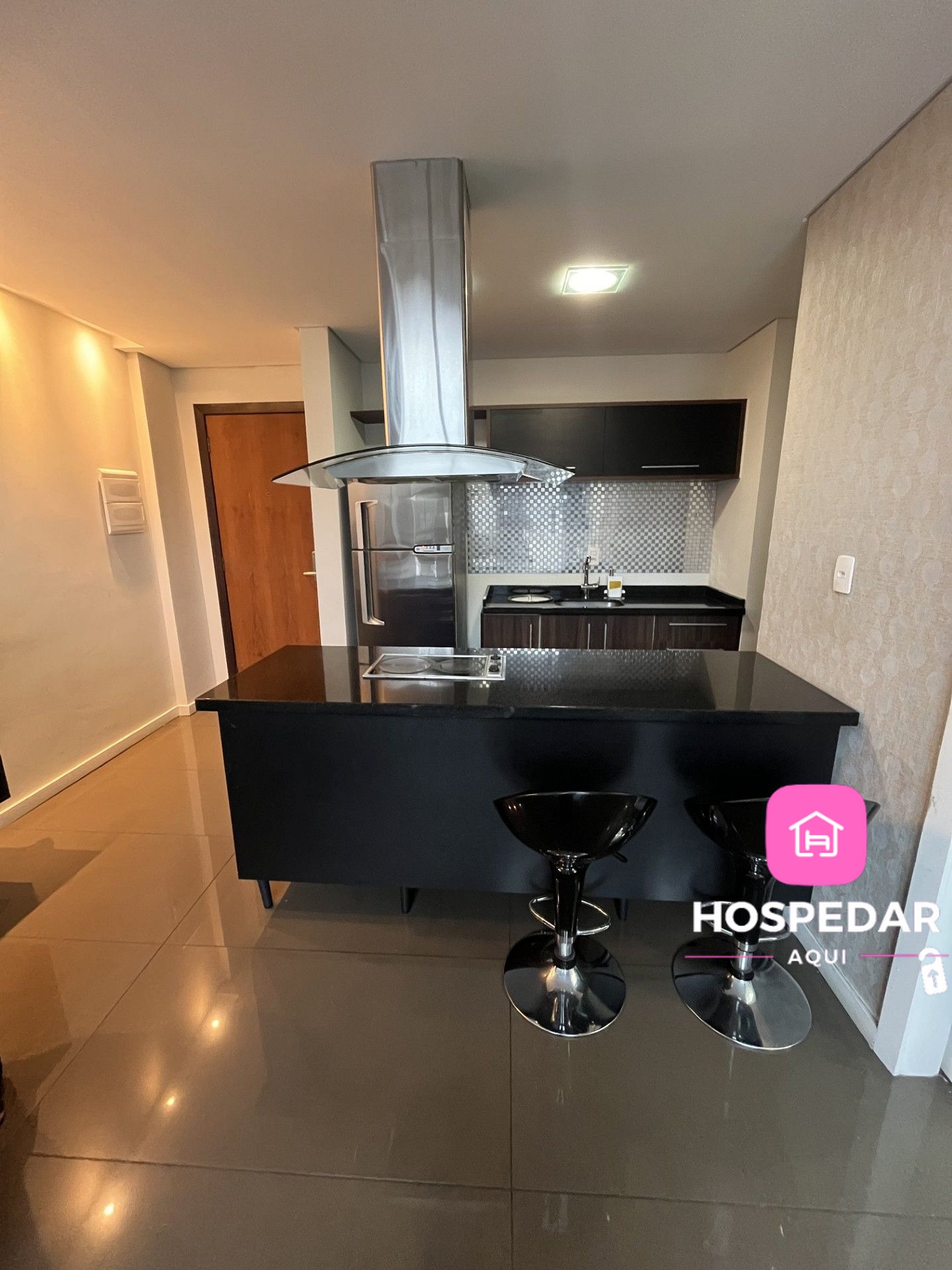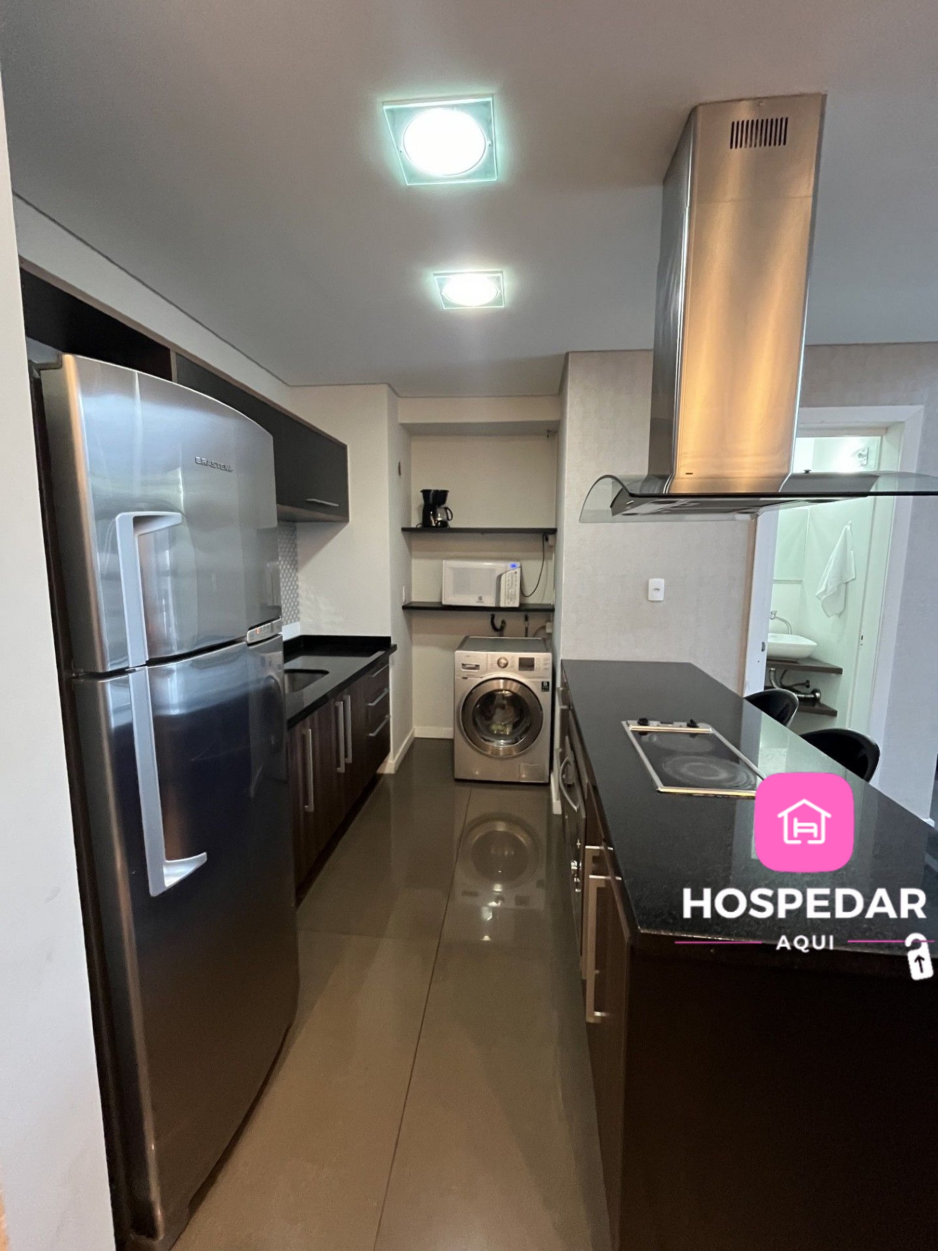 Além do loft exclusivo para os hóspedes, o prédio tem piscina e academia de ginástica no terraço, com uma vista incrível da cidade além de uma garagem privativa sem custo.