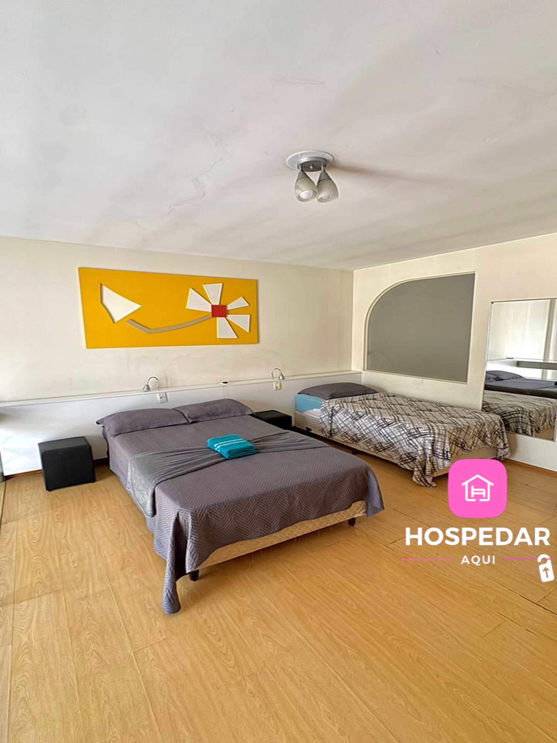 Além do loft exclusivo para os hóspedes, o prédio tem piscina e academia de ginástica no terraço, com uma vista incrível da cidade além de uma garagem privativa sem custo.
