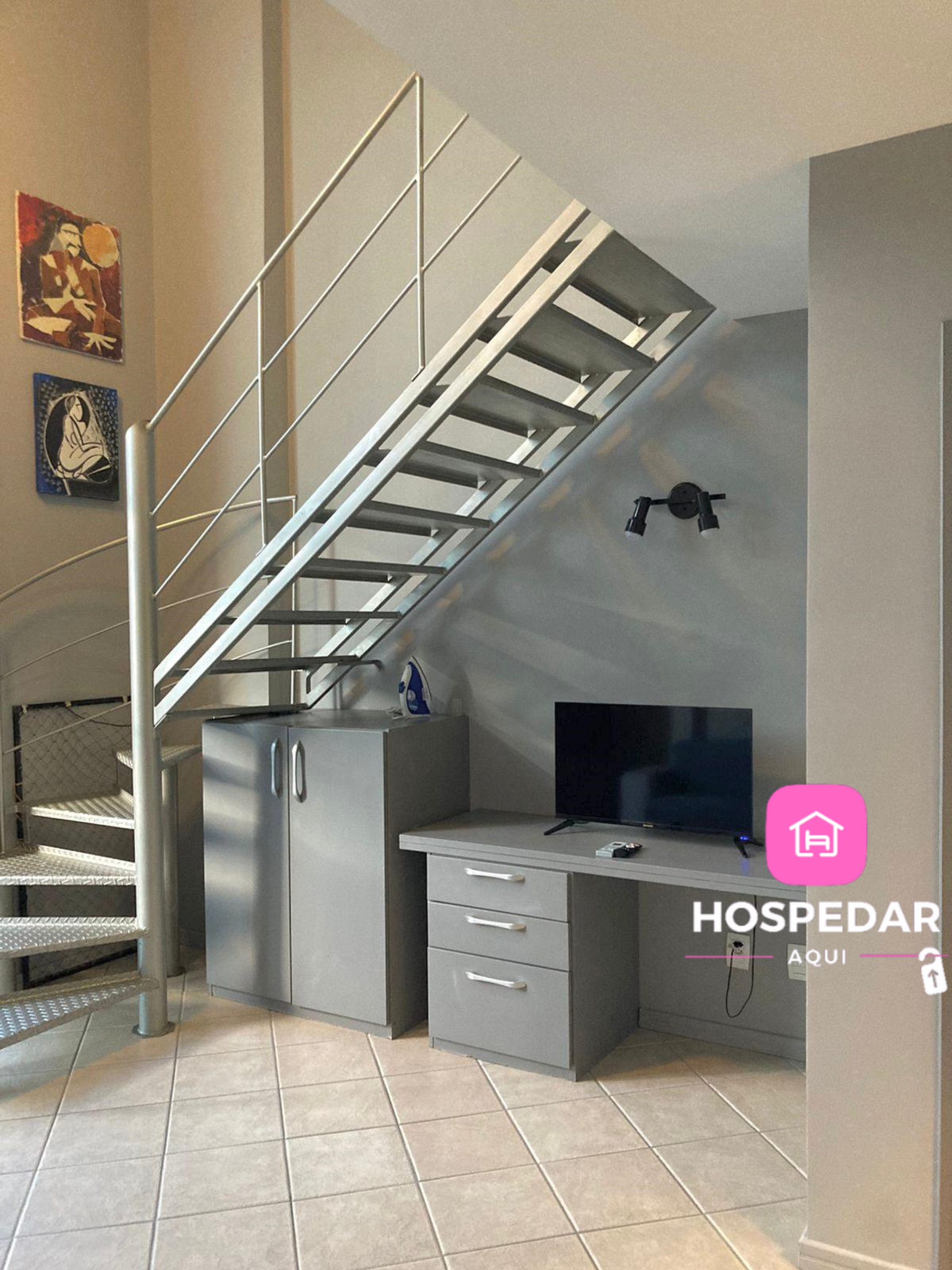 Além do loft exclusivo para os hóspedes, o prédio tem piscina e academia de ginástica no terraço, com uma vista incrível da cidade além de uma garagem privativa sem custo.