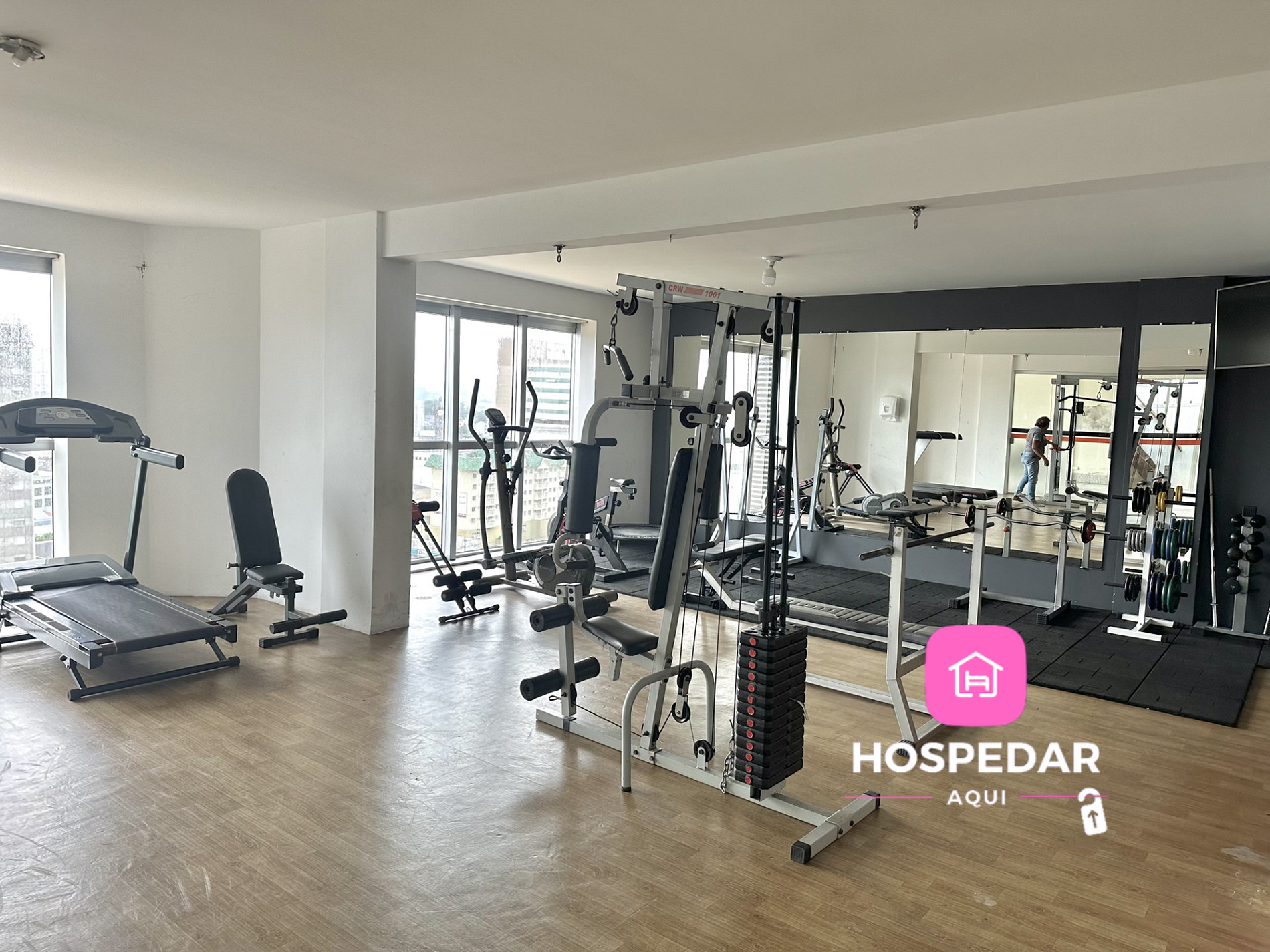 Além do loft exclusivo para os hóspedes, o prédio oferece piscina e academia no terraço, proporcionando uma vista incrível da cidade. Conta ainda com garagem privativa gratuita.